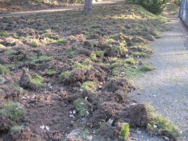 Wie jedes Jahr haben auch dieses Mal wieder viele fleißige Hände dabei geholfen, die Anlage in Schuss zu bringen. Zusätzlich zu den üblichen Arbeiten mussten nun auch noch die Spuren unserer uneingeladenen Besucher beseitigt werden. Obwohl wir es gerne sehen, wenn sich alle auf unserer Anlage "sauwohl" fühlen, war diese Einladung nicht für die Gruppe Wildschweine gedacht, die einen großen Teil der Rasenfläche unserer Anlage nach essbarem durchwühlt hatte.