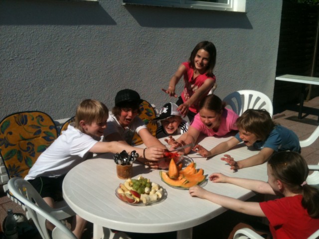 Insgesamt 20 Kinder im Alter von 8-14 Jahren fanden sich in zwei Camps auf unserer Anlage ein. Täglich wurde mit einem Aufwärmprogramm begonnen. Dann wurde in homogenen Gruppen das Training auf dem Tennisplatz fortgesetzt. Am letzten Tag fand ein kleines Turnier mit anschließender Siegerehrung statt. Die Kinder waren mit Eifer bei der Sache und wurden, wie auf dem Foto zu sehen, auch bestens beköstigt.