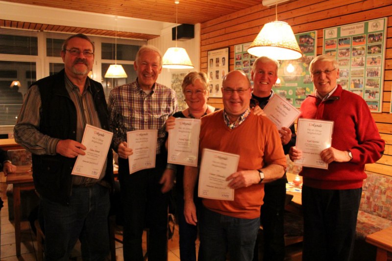 Geehrt wurden für 25 Jahre Mitgliedschaft: Gerda und Thomas Schmidt sowie Klaus Steiner. Für 30 Jahre: Astrid Kurth, Sascha Kießling, und Michael Meik. Für 35 Jahre: Dr. Hartmut Hüsges und schließlich für 40 Jahre: Matthias Kuhla, Karl Reither, Günter Schmitz und Dieter Schneider.